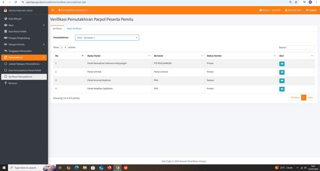 Pengumuman Pemutakhiran Data Partai Politik Secara Berkelanjutan Melalui Sipol Semester 1