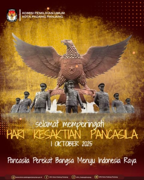 Komisi Pemilihan Umum (KPU) Kota Padang Panjang Mengucapkan Selamat Memperingati Hari Kesaktian Pancasila 1 Oktober 2025.
