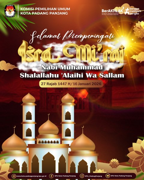 Komisi Pemilihan Umum Kota Padang Panjang mengucapkan Selamat Memperingati Isra’ Mi’raj Nabi Muhammad shallallahu ‘alaihi wa sallam.