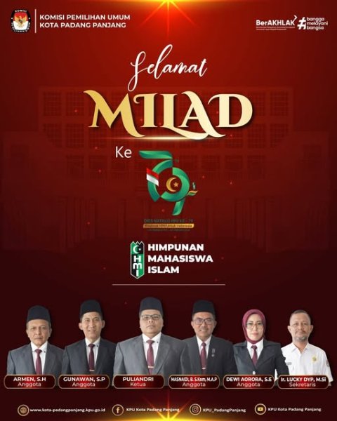 Padang Panjang- Keluarga Besar Komisi Pemilihan Umum (KPU) Kota Padang Panjang mengucapkan Selamat Milad ke-79 Himpunan Mahasiswa Islam (HMI).