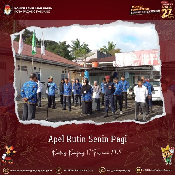 #Temanpemilih, Komisi Pemilihan Umum (KPU) Kota Padang Panjang melaksanakan apel rutin senin pagi dihalaman kantor, Senin, 17/02/2025.