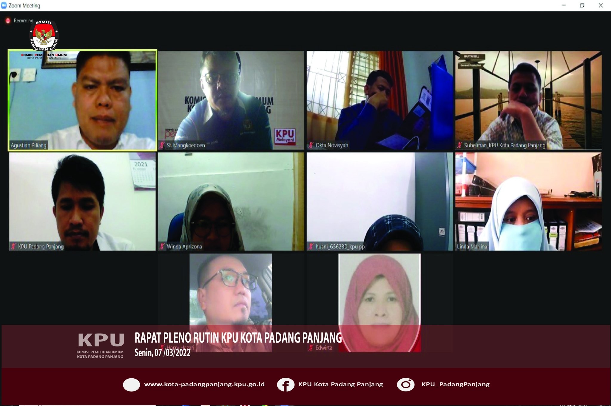 Sesuai agenda rutin, KPU Kota Padang Panjang mengadakan rapat pleno yang berlangsung secara daring, Senin (7/03/2022).