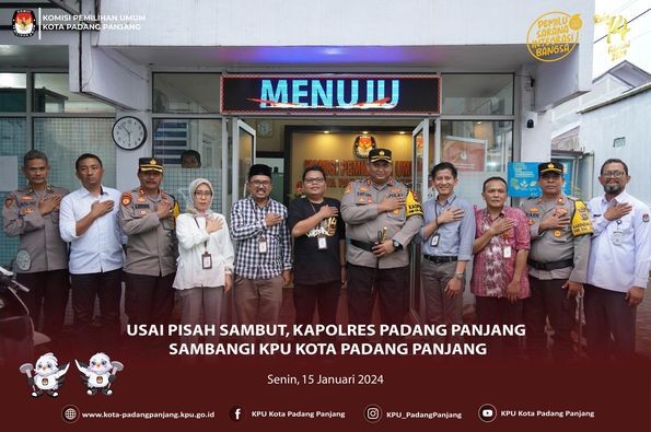 #Temanpemilih Usai pisah sambut Kapolres Padang Panjang dari AKBP Donny Bramanto kepada AKBP Kartyana Wiyarso Wardoyo Putro, Kapolres Padang Panjang yang baru menyambangi kantor KPU kota Padang Panjang, Senin (15/1).