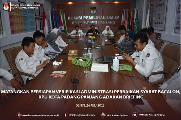 #Temanpemilih Senin (24/7) Komisi Pemilihan Umum (KPU) Kota Padang Panjang melaksanakan apel senin pagi bertempat di halaman kantor KPU Kota Padang Panjang. Diikuti oleh Ketua KPU Kota Padang Panjang, Pejabat struktural dan fungsional beserta seluruh staf sekretariat KPU Kota Padang Panjang. Dalam apel tersebut, Ketua KPU Kota Padang Panjang, Okta Novisyah yang bertindak sebagai pembina apel dalam amanatnya menyampaikan beberapa poin penting diantaranya tim verifikator harus benar-benar teliti dan mencermati dokumen syarat bakal calon dalam tahapan verifikasi administrasi pasca penerimaan perbaikan kembali. Terkait dengan logistik, Okta menekankan bahwasanya tahapan pengadaan logistik untuk pemilu serentak tahun 2024 merupakan tahapan yang krusial sehingga harus tepat jumlah, tepat guna dan tepat sasaran. Sebelum mengakhiri arahannya, kembali diingatkan kepada seluruh jajaran KPU Kota Padang Panjang untuk dapat menjaga kesehatan seiring dengan intensitas pekerjaan yang semakin tinggi. Tetap menjaga kekompakan, kerjasama dan koordinasi baik dengan pihak eksternal maupun dengan internal KPU Kota Padang Panjang. (rts) #KPUMelayani #PemiluSerentak2024