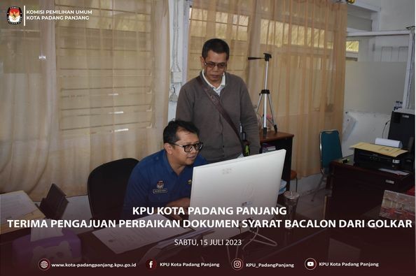 #Temanpemilih Sesuai dengan SE KPU RI Nomor 701 yang menerangkan bahwa partai politik diberi kesempatan untuk memperbaiki kembali dokumen syarat bakal calon anggota DPRD yang belum lengkap di aplikasi SILON, maka KPU Kota Padang Panjang kembali menerima perbaikan dokumen syarat bakal calon dari partai politik.