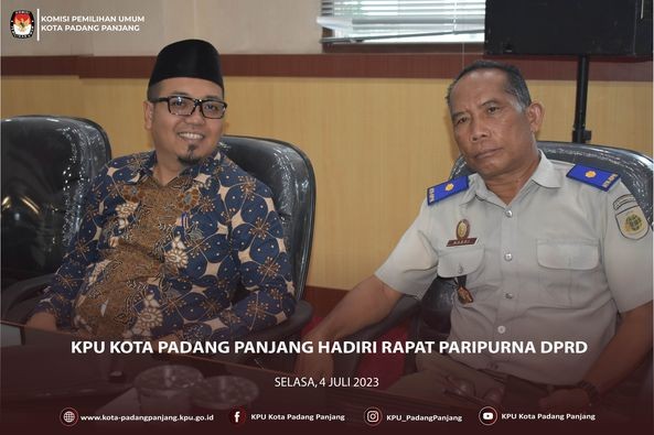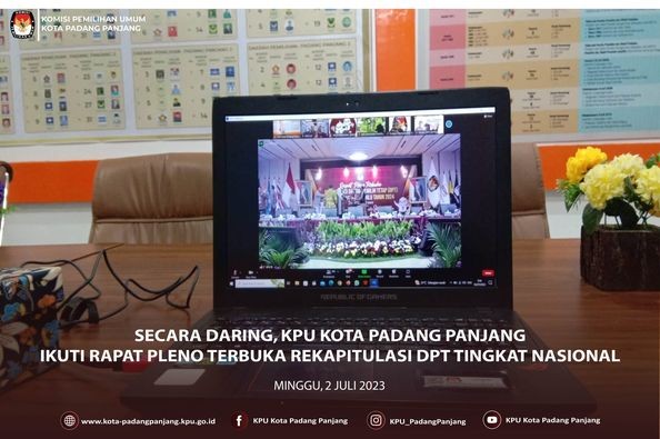 #TemanPemilih, Ketua Divisi Perencanaan, Data dan Informasi KPU Kota Padang Panjang, Mondra beserta Operator Sidalih, Irsandi Yudha mengikuti Rapat Pleno Terbuka Rekapitulasi Daftar Pemilih Tetap (DPT) Tingkat Nasional Pemilu Tahun 2024, di Gedung KPU, Minggu (2/7) secara daring melalui aplikasi zoom meeting.