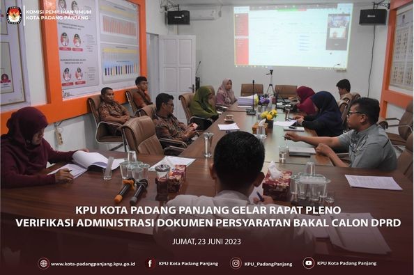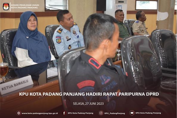 #Temanpemilih Ketua Divisi Hukum dan Pengawasan KPU Kota Padang Panjang, Edwirta menghadiri rapat paripurna DPRD Kota Padang Panjang dalam rangka Penyampaian Pandangan Umum Fraksi-Fraksi DPRD Kota Padang Panjang terhapa Nota Penjelasan Walikota atas Ranperda tentang Pertanggungjawaban Pelaksanaan APBD Tahun Anggaran 2022, Selasa (27/6). Bertempat di ruang sidang DPRD, Rapat dihadiri oleh Walikota Padang Panjang, Fadly Amran., jajaran Forkopimda, Kepala OPD di lingkungan Kota Padang Panjang dan sejumlah pejabat lainnya. Rapat paripurna tersebut dipimpin oleh Ketua DPRD Kota Padang Panjang, Mardiansyah dengan didampingi oleh Wakil Ketua DPRD Kota Padang Panjang, Imbral dan Yulius Kaisar. Dalam hal ini, terdapat 6 juru bicara fraksi DPRD yang menyampaikan pandangannya yakni faksi Golkar, Gerindra, Nasdem, Demokrat, PBB-PKS dan PAN. Edwirta berharap melalui rapat paripurna ini, KPU, DPRD, pemerintah daerah serta jajaran OPD terkait lainnya dapat berkomitmen bersama untuk tetap menjaga persatuan dan kesatuan serta dapat berpartisipasi secara optimal untuk memajukan Kota Padang Panjang. (rts)