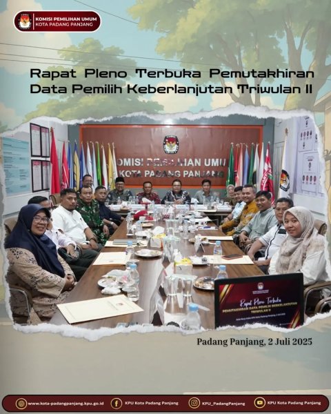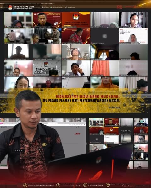 Padang Panjang, #Temanpemilih, Komisi Pemilihan Umum (KPU) Kota Padang Panjang mengikuti zoom meeting rapat koordinasi (rakor) penjelasan Surat Dinas KPU Republik Indonesia Nomor 1109/PL.01.SD/06/2025 tanggal 26 Juni 2025 perihal Penjelasan Pelaksanaan Kegiatan Pasca Pemilu dan Pemilihan.