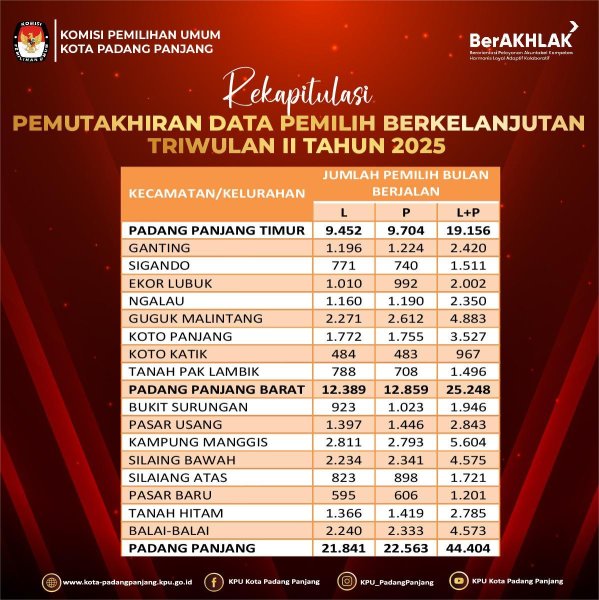 Berkenaan dengan hal tersebut, KPU Kota Padang Panjang sudah menyurati Pimpinan Partai Politik se-Kota Padang Panjang melalui surat dinas nomor 29/PL.01.2-SD/1374/VI/2025 tanggal 19 Juni 2025 perihal Pemuthakiran Data Partai Politik secara berkelanjutan melalui SIPOL Tahun 2025.