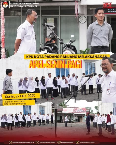 Upacara di laksanakan di halaman kantor KPU Kota Padang Panjang, Selasa, 28/10/2025.