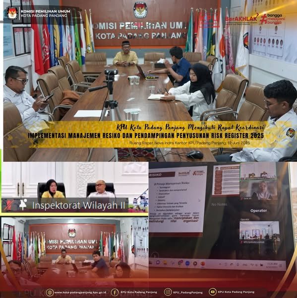 #Temanpemilih, Komisi Pemilihan Umum (KPU) Kota Padang Panjang Mengikuti Rapat Koordinasi Implementasi Manajemen Resiko dan Pendampingan Penyunsunan Risk Register 2025 pada KPU, KPU Provinsi, KPU Kabupaten/Kota yang dilaksanakan secara daring oleh KPU Republik Indonesia, Kamis, 12/06/2025.