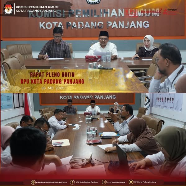 Padang Panjang, #Temanpemilih, Komisi Pemilihan Umum (KPU) Kota Padang Panjang melaksanakan rapat pleno yang dilaksanakan di Aula Nova Indra, Senin, 26/05/2025.