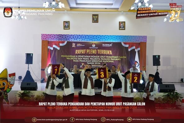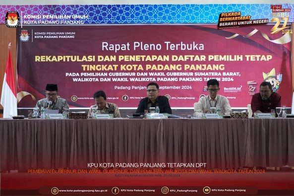 Ditetapkan dalam rapat pleno terbuka rekapitulasi dan penetapan daftar pemilih tetap tingkat Kota Padang Panjang oleh KPU Kota Padang Panjang yang dihadiri oleh Pj. Walikota Padang Panjang, Ketua DPRD Padang Panjang, DanDim 0307 Kabupaten Tanah Datar, Danscata B, Polres Padang Panjang, Kejaksaan Negeri Padang Panjang, Danyon Brimob Polda Sumbar Padang Panjang, Rutan II.B Padang Panjang, Bawaslu Padang Panjang, BPBD Kesbangpol Padang Panjang, Dinas Kominfo Padang Panjang, Camat Se Kota Padang Panjang, LO Bapaslon Gubernur dan Wakil Gubernur Provinsi Sumatera Barat, LO Bapaslon Walikota dan Wakil Walikota Padang Panjang, Insan Pers dan PPK se Kota Padang Panjang.