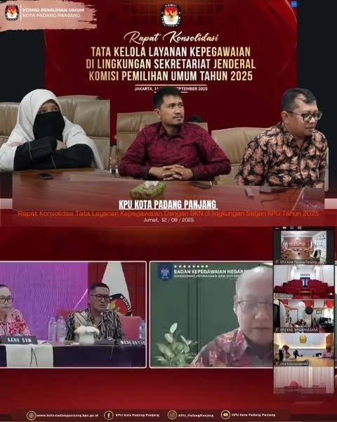 KPU Kota Padang Panjang Mengikuti Rapat Konsolidasi Tata Layanan Kepegawaian dengan BKN di lingkungan Setjen KPU Tahun 2025 secara vertual dari Kantor KPU Kota Padang Panjang, 12/09/2024. Kegiatan ini dilaksanakan dari tanggal 12-13 September 2025.
