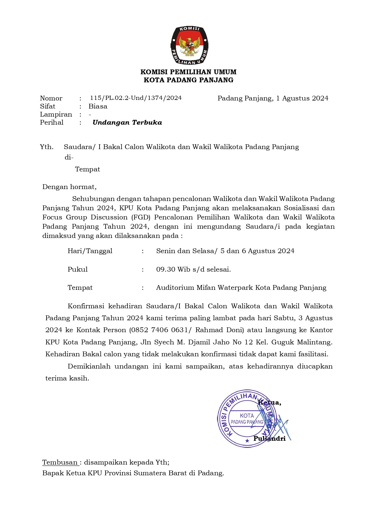 Yogyakarta, Komisi Pemilihan Umum (KPU) Kota Padang Panjang menhanghadiri Rapat Koordinasi Analisa Data Ganda dan Invalid Menuju Penetapan DPS Pilkada Tahun 2024 dilaksanakan tanggal 3 -7 Agustus 2024.