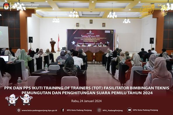 #Temanpemilih Jelang pelantikan KPPS, KPU kota Padang Panjang menggelar Training of Trainers (TOT) Fasilitator Bimbingan Teknis Pemungutan dan Penghitungan Suara Pemilu Tahun 2024 terhadap PPK dan PPS se kota Padang Panjang, Rabu (24/1).