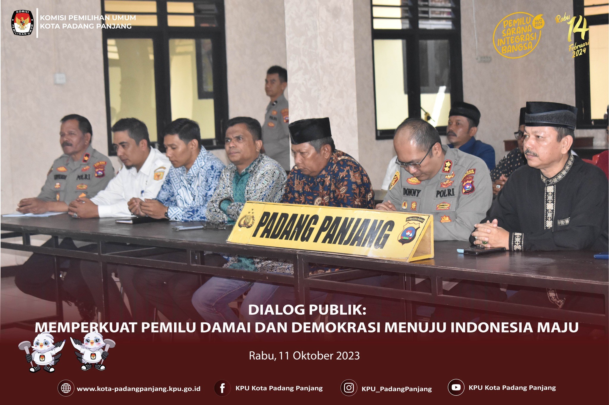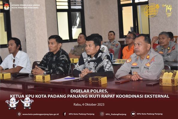 Dialog Publik: Memperkuat Pemilu Damai dan Demokrasi Menuju Indonesia Maju #Temanpemili Plh Ketua KPU Kota Padang Panjang, Mondra mengikuti acara Dialog Publik dengan tema “Pilpres 2024: Memperkuat Pemilu Damai dan Demokrasi Menuju Indonesia Maju”, yang di gelar oleh Div Humas Polri secara nasional melalui aplikasi zoom meeting, Rabu (11/10). Bertempat di Aula Enda Dharma Polres Padang Panjang, kegiatan tersebut diikuti oleh Kapolres Padang Panjang, Donny Bramanto beserta jajaran, Ketua Bawaslu Padang Panjang, Hidayatul Fajri., Tokoh Agama, Tokoh Adat dan Tokoh Masyarakat. Dibuka secara resmi oleh Kabagpenum Divhumas Polri, Gatot Repli Handoko yang dalam sambutannya menyampaikan bahwa dengan terselenggaranya dialog publik ini dapat menjaring gagasan dalam memperkuat persatuan nasional dalam agenda pemilihan umum serta sebagai sarana menjelaskan peran strategis Polri dalam menjaga stabilitas nasional jelang pemilihan umum. Hadir sebagai narasumber Asisten Operasi (Asops) Kapolri, Verdianto Iskandar Bitticaca., Ketua KPU RI, Hasyim Asy’ari., Ketua Bawaslu RI, Rahmat Bagja., dan Ahli Komunikasi Politik FISIP Universitas Nasional, Lely Arrianie. Usai pemaparan dari narasumber, acara dilanjutkan dengan kegiatan diskusi yang dipandu oleh moderator dan terakhir diisi dengan sesi tanya jawab. (rts) #KPUMelayani #PemiluSerentak2024