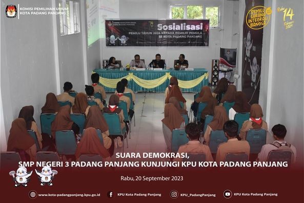 #Temanpemilih SMP Negeri 3 Padang Panjang mengadakan kunjungan belajar ke kantor KPU Kota Padang Panjang dalam rangka Proyek Penguatan Profil Pelajar Pancasila (P5) dengan tema “Suara Demokrasi” yang merupakan pengimplementasian kurikulum merdeka.