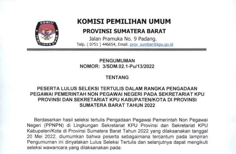 Sekretariat KPU Kota Padang Panjang melalui Kantor Pelayanan Kekayaan Negara dan Lelang (KPKNL) Bukittinggi akan melaksanakan Lelang Non Eksekusi Wajib BMN melalui Aplikasi Lelang Internet ( Closed Biddding) dengan penawaran secara tertulis tanpa kehadiran peserta lelang, terhadap 1(satu) Paket Barang Milik Negara Pasca Pemilu/Pemilihan, Pilkada Tahun 2020 serta Barang Perlengkapan Pemungutan Suara dapat Download disini.