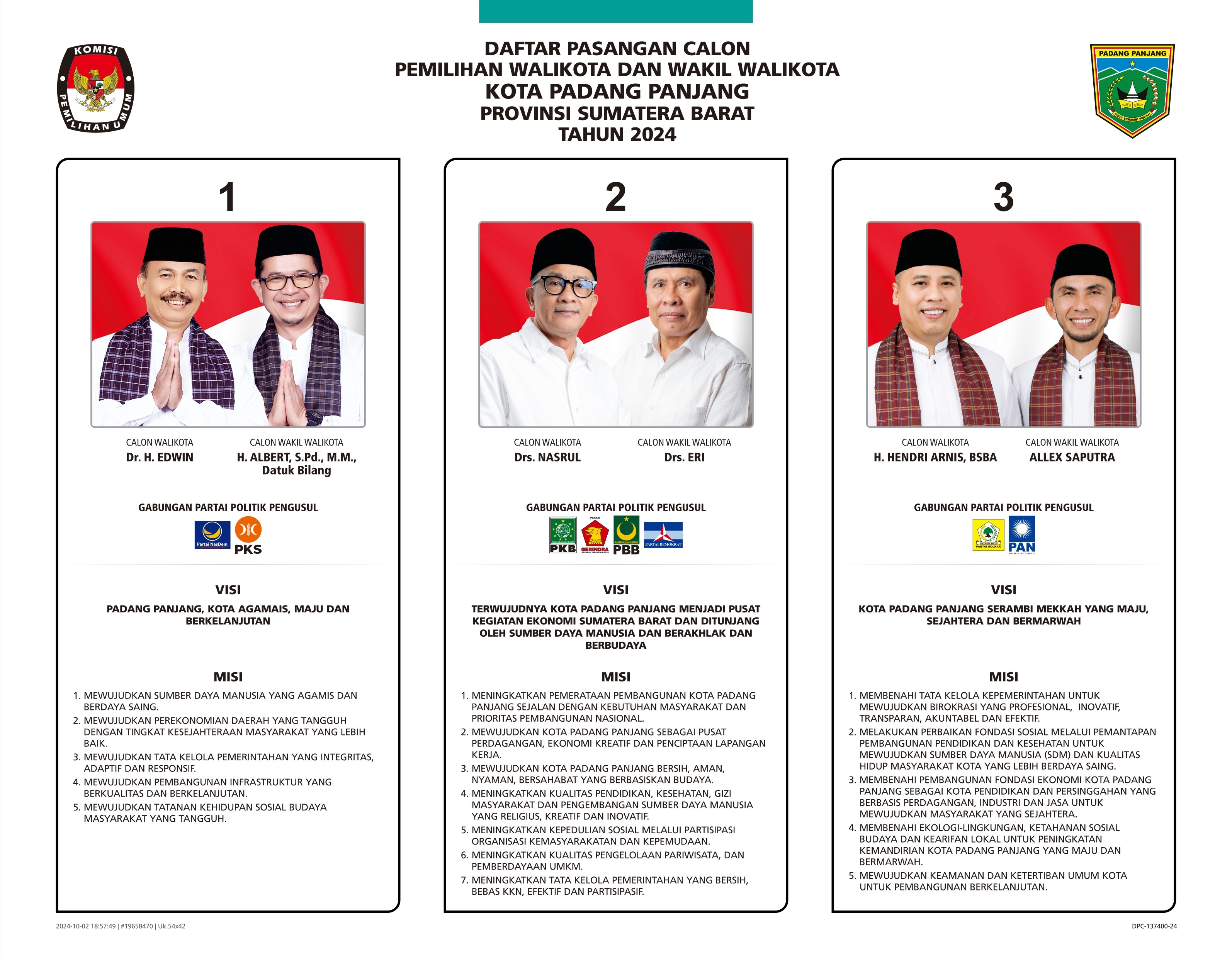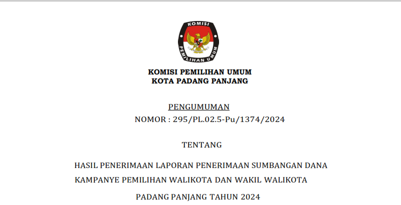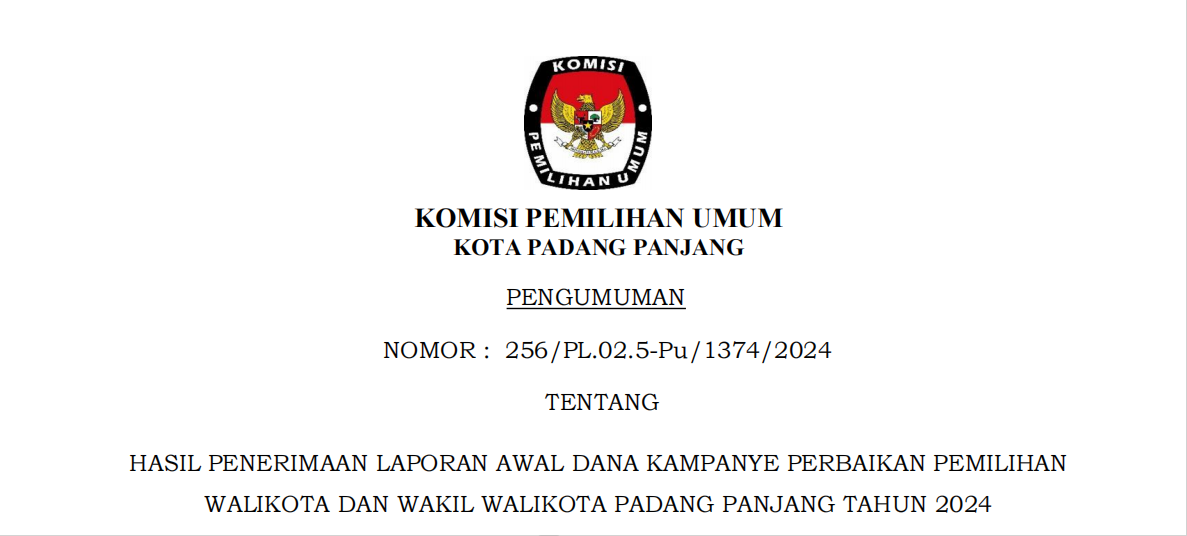 Padang Panjang, #Temanpemilih, Komisi Pemilihan Umum (KPU) Kota Padang Panjang mengumumkan Surat Keputusan Tim Kampanye Pasangan Calon Walikota dan Wakil Walikota Padang Panjang Tahun 2024.