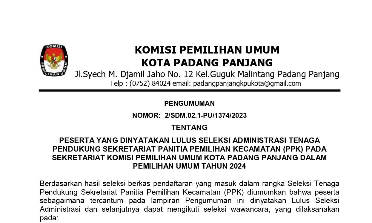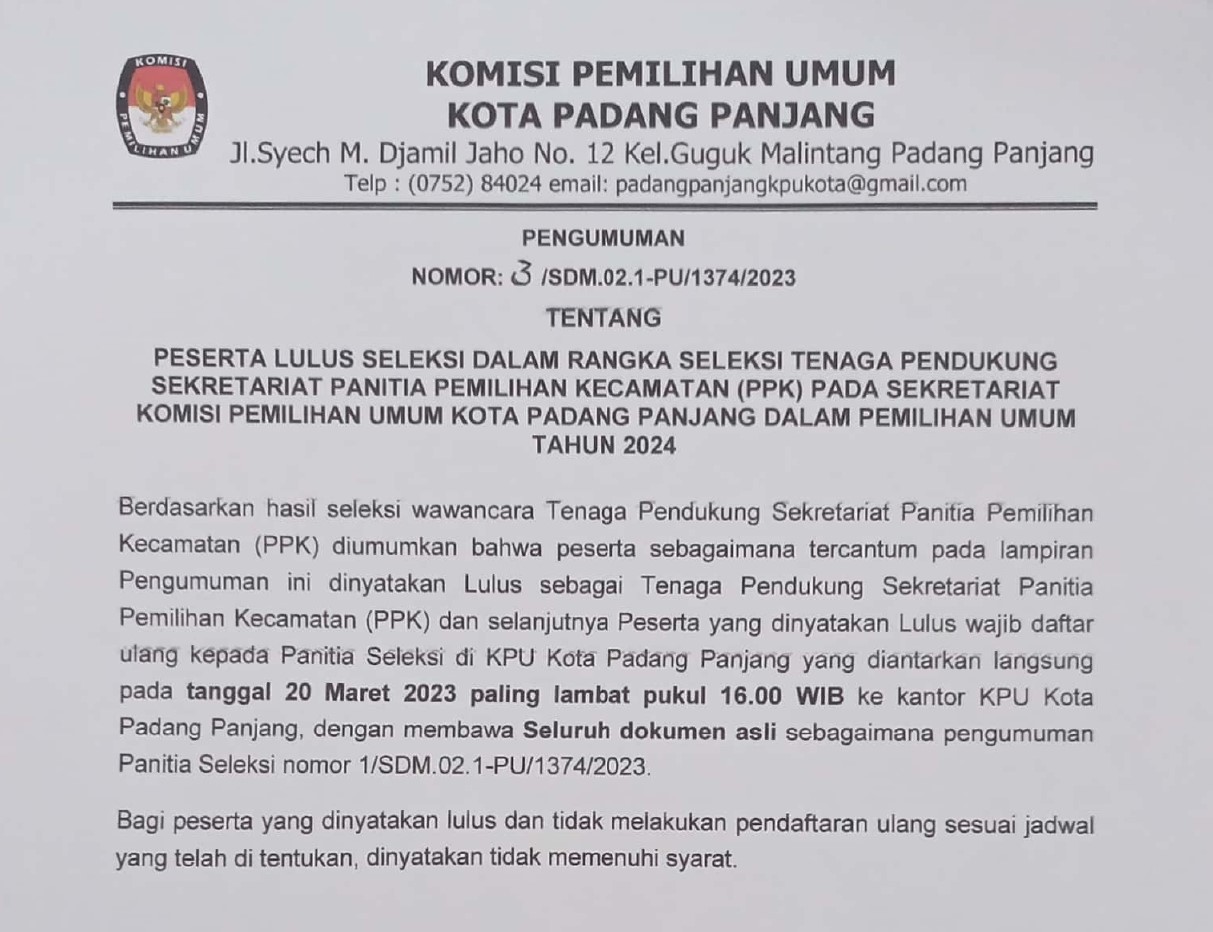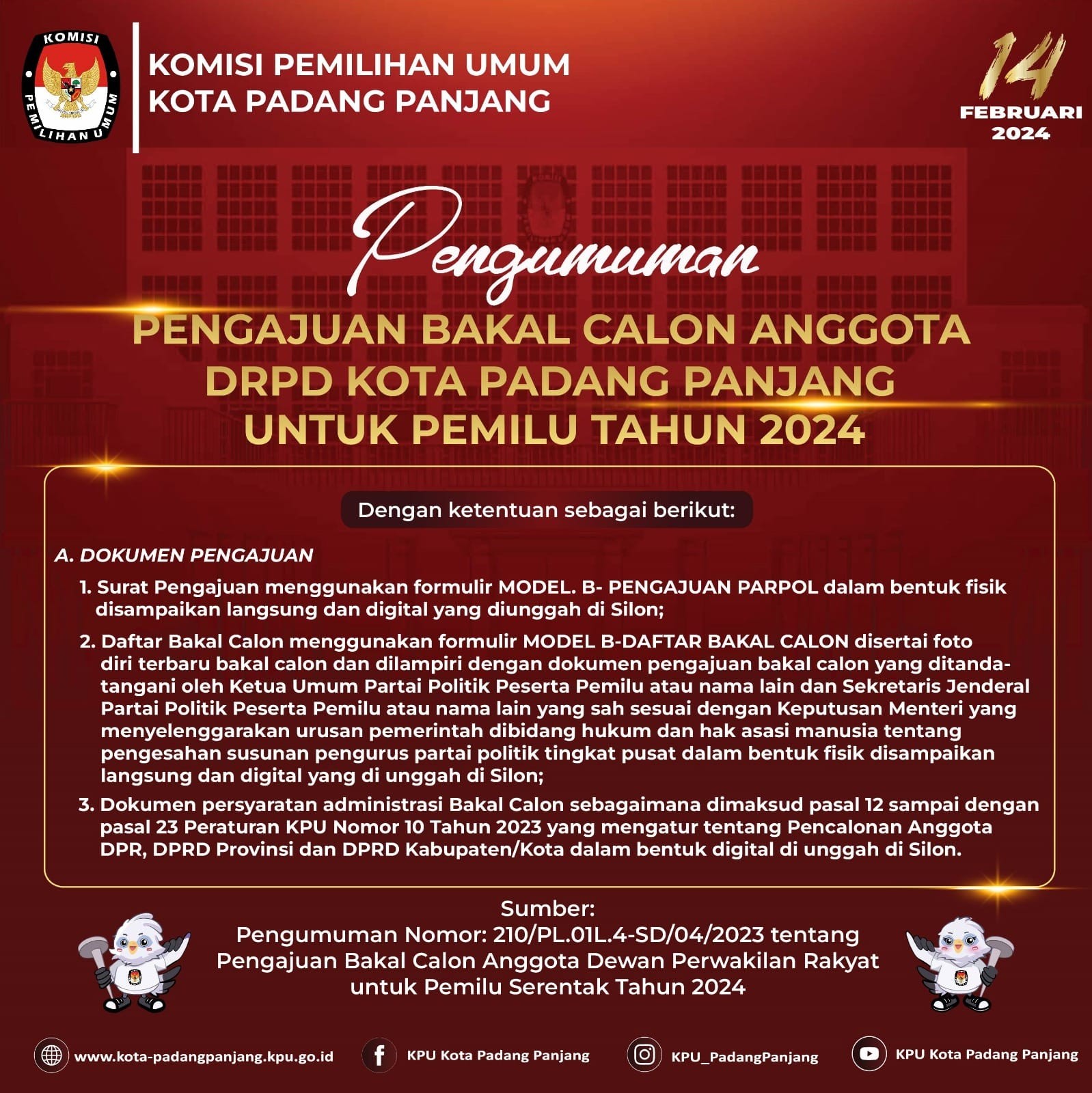 PENGUMUMAN DAFTAR CALON SEMENTARA CALON ANGGOTA DPRD KOTA PADANG PANJANG PEMILU 2024