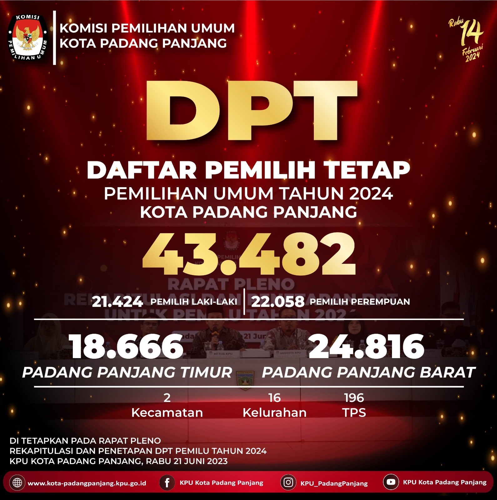 kota-padangpanjang.kpu.go.id. Komisi Pemilihan Umum (KPU) Kota Padang Panjang mengumumkan daftar calon sementara (DCS) Anggota Dewan Perwakilan Rakyat Daerah (DPRD) Kota Padang Panjang Pemilihan Umum (Pemilu) Serentak Tahun 2024, Berkenaan dengan hal tersebut, sesuai dengan ketentual Pasal 71 Peraturan KPU Nomor 10 Tahun 2023 tentang Pencalonan Anggota Dewan Perwakilan Rakyat, Dewan Perwakilan Rakyat daerah Provinsi, Dewan Perwakilan Rakyat daerah Kabupaten/Kota, bahwa masyarakat dapat menyampaikan masukan dan tanggapan terhadap calon sementara Anggota DPR, DPRD Provinsi dan DPRD Kabupaten/Kota yang tercantum dalam Daftar Calon Sementara (DCS) dari tanggal 19-28 Agustus 2023. Untuk mendapatkan masukan dan tanggapan masyarakat, memperhatikan hal-hal tersebut: Masukan dan tanggapan masyarakat disampaikan secara tertulis terkait dengan pemenuhan persyaratan administasi bakal calon Anggota DPR, DPRD Provinsi dan DPRD Kabupaten/Kota. Masukan dan tanggapan masyarakat disertai dengan bukti identitas diri dan bukti yang relevan kepada KPU kota Padang Panjang melalui: Website info pemilu KPU yaitu https://infopemilu.kpu.go.id Kantor KPU Kota Padang Panjang yang beralamat di Jalan Syech M.Djamil Jaho Nomor 12 Kelurahan Guguk Malintang Kecamatan Padang Panjang Timur Kota Padang Panjang Email : tanggapanmasyarakatdcs@gmail.com / tekniskpu.padangpanjangkota@gmail.com Informasi lebih lanjut dapat menghubungi helpdesk pencalonan KPU Kota Padang Panjang Formulir Tanggapan ( download disini) Daftar Calon Sementara (DCS) bakal calon anggota DPRD Kota Padang Panjang dapat dilihat di website KPU Kota Padang Panjang : www.kota-padangpanjang.kpu.go.id, media massa, media elektronik dan media cetak harian serta media sosial. Berikut daftar calon sementara masing-masing Partai politik peserta pemilihan Umum (pemilu) Tahun 2024 sebagai berikut : NO. NAMA PARTAI POLITIK AKRONIM KETERANGAN 1 PARTAI KEBANGKITAN BANGSA PKB DOWNLOAD DISINI 2 PARTAI GERAKAN INDONESIA RAYA PARTAI GERINDRA DOWNLOAD DISINI 3 PARTAI DEMOKRASI INDONESIA PERJUANGAN PDI PERJUANGAN DOWNLOAD DISINI 4 PARTAI GOLONGAN KARYA PARTAI GOLKAR DOWNLOAD DISINI 5 PARTAI NasDem PARTAI NasDem DOWNLOAD DISINI 6 PARTAI BURUH PARTAI BURUH DOWNLOAD DISINI 7 PARTAI GELOMBANG RAKYAT INDONESIA PARTAI GELORA DOWNLOAD DISINI 8 PARTAI KEADILAN SEJAHTERA PKS DOWNLOAD DISINI 9 PARTAI KEBANGKITAN NUSANTARA PKN TIDAK ADA CALON 10 PARTAI HATI NURANI RAKYAT PARTAI HANURA DOWNLOAD DISINI 11 PARTAI GARDA PERUBAHAN INDONESIA PARTAI GARUDA TIDAK ADA CLON 12 PARTAI AMANAT NASIONAL PAN DOWNLOAD DISINI 13 PARTAI BULAN BINTANG PBB DOWNLOAD DISINI 14 PARTAI DEMOKRAT PARTAI DEMOKRAT DOWNLOAD DISINI 15 PARTAI SOLIDARITAS INDONESIA PSI DOWNLOAD DISINI 16 PERSATUAN INDONESIA PERINDO TIDAK ADA CALON 17 PARTAI PERSATUAN PEMBANGUNAN PPP DOWNLOAD DISINI 24 PARTAI UMMAT PARTAI UMMAT DOWNLOAD DISINI SK Penetapan DCS Calon Anggota DPRD Kota Padang Panjang Pemilu 2024 (DOWNLOAD DISINI)