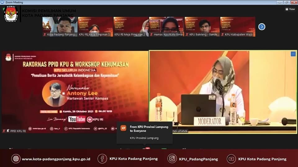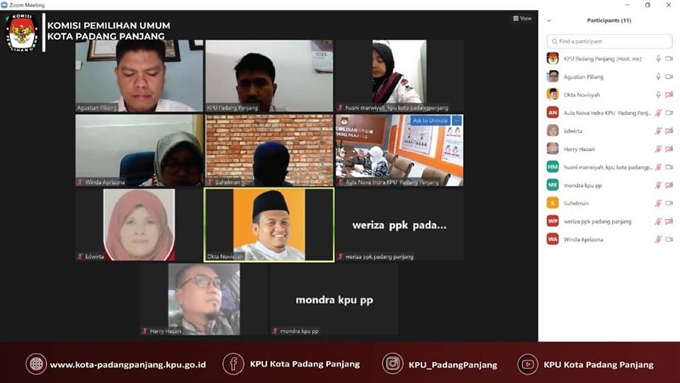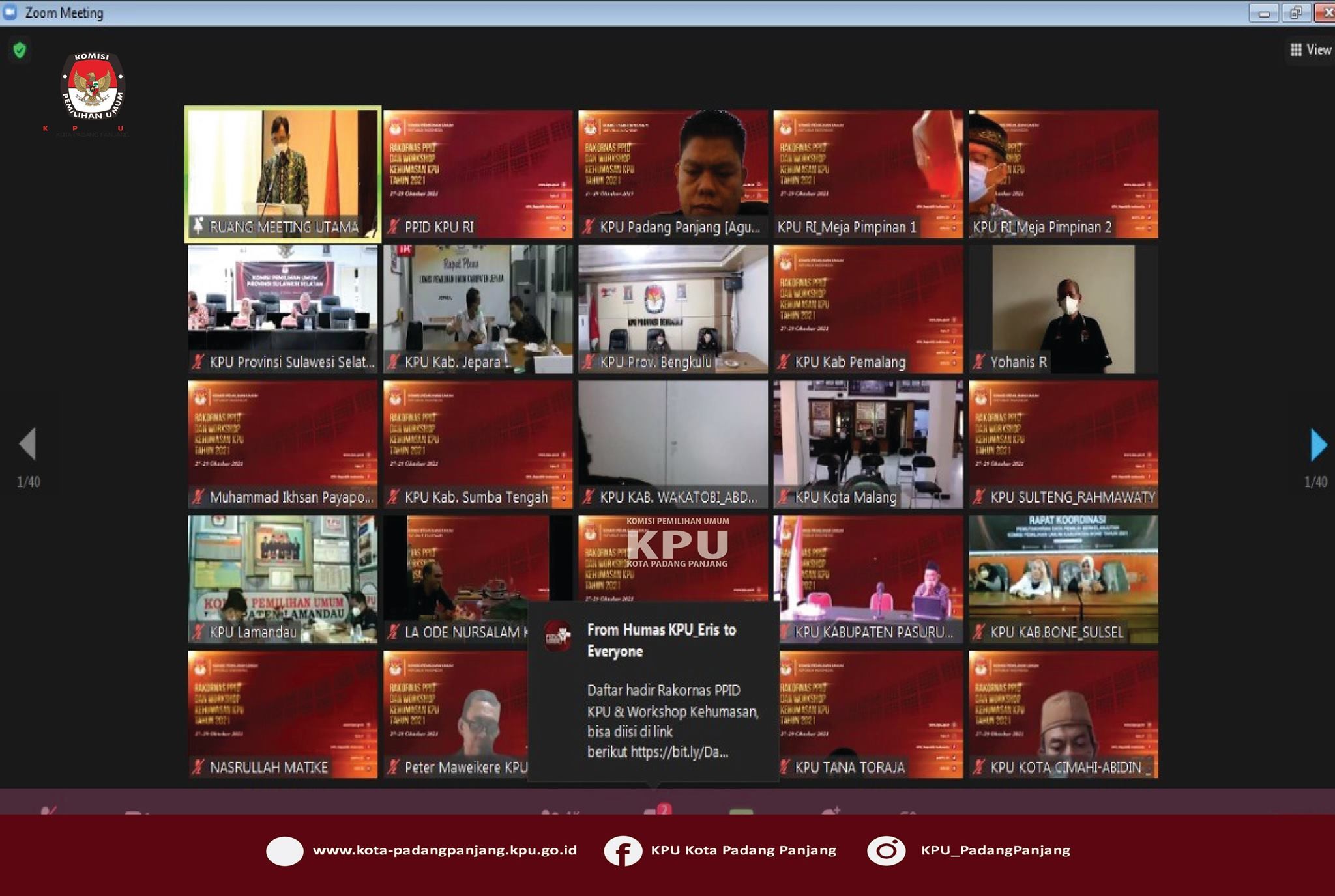 KPU Kota Padang menghadiri Rakornas PPID dan Workshop Kehumasan KPU Tahun 2021 secara daring di Kantor KPU Kota Padang Panjang melalui join zoom meeting oleh KPU RI dari Sentul Bogor, 27/10/2021.